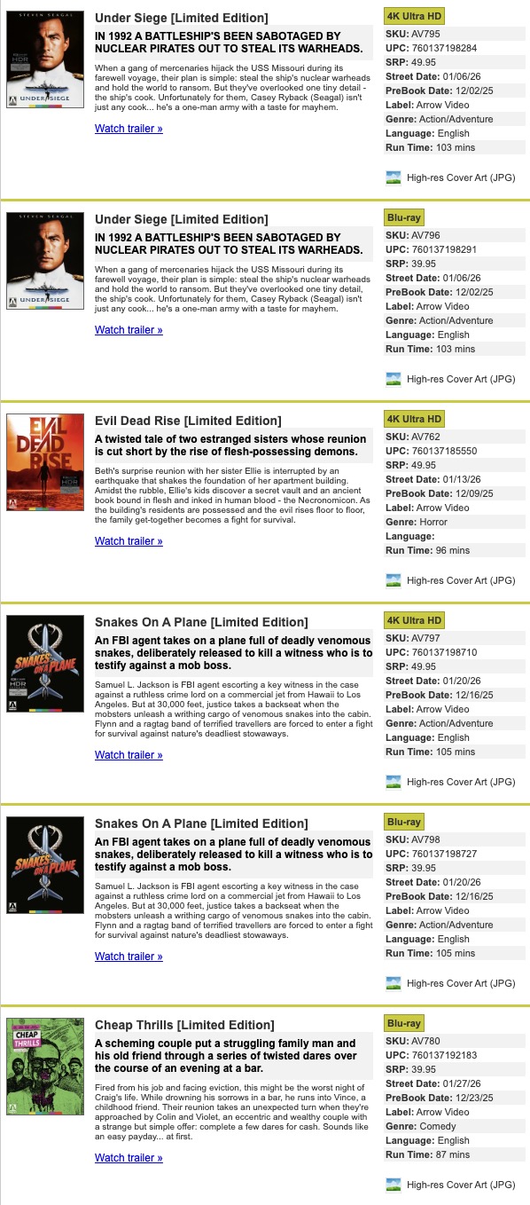 Under Siege and Snakes on A Plane Make their Global 4K UHD Premiers,