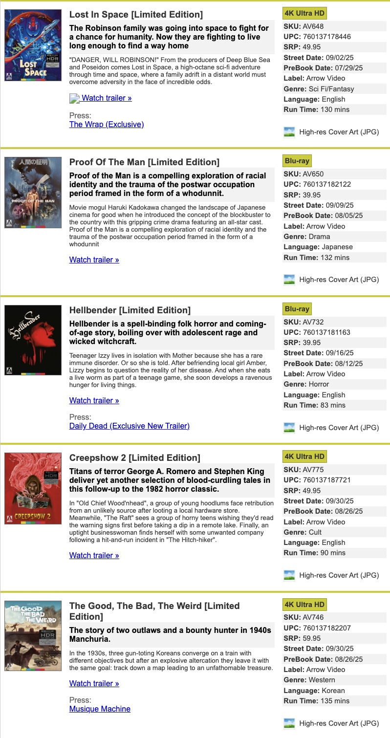 Arrow Video Announces September 2025 Release Schedule