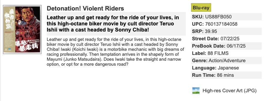 On July 22nd, 88 Films proudly presents the North American Blu-ray debut of the Japanese motorcycle cult classic, Detonation! Violent Riders (1975), in a limited edition featuring a high-definition transfer packed with bonus content.