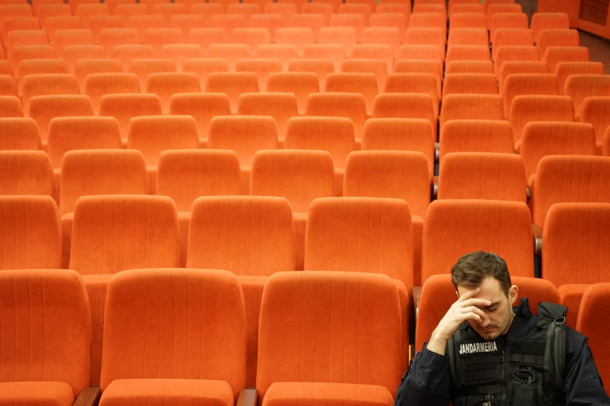 Planning to spend a romantic weekend with his long-distance boyfriend, Christi’s tender reunion is cut short when he is called in to handle a crisis at work. Christi is a member of the Bucharest police force, and his unit is sent to quell a protest at a local movie theater, where a far-right group has interrupted the screening of a queer film. As tensions between the homophobic protesters and the audience mount, Christi, closeted to his fellow officers, begins to spiral out of control when he spots a former fling in the crowd. A violent outburst threatens to expose Christi’s secret and forces him to confront the contradictions between his personal and professional life.