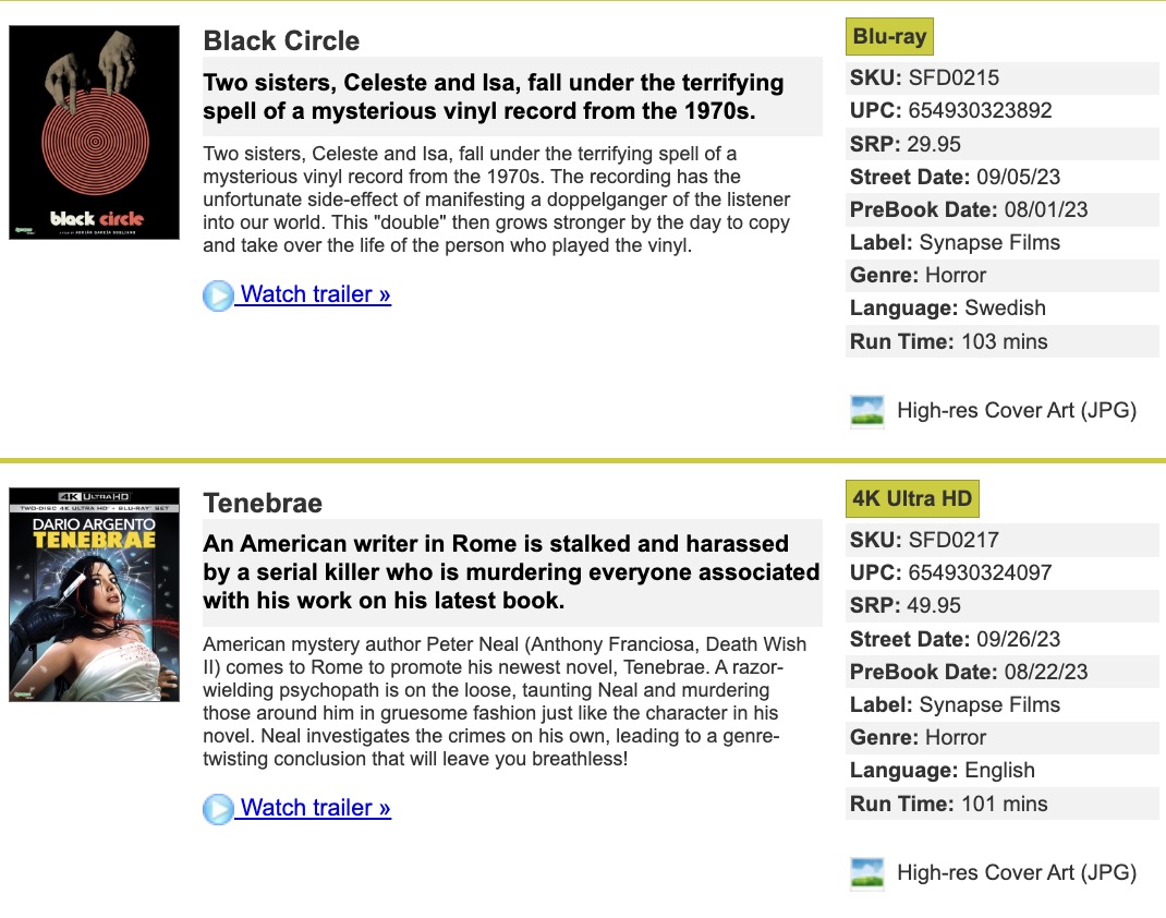Synapse Films Delivers ‘Black Circle,’ ‘Tenebrae’ in September